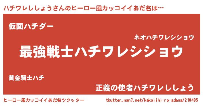 | ヘコむあだ名 | 『ハチワレししょう(笑)』『ハチ太郎』 |