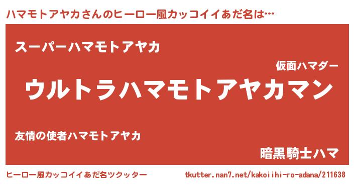 ハマモトアヤカさんのヒーロー風カッコイイあだ名をツクッター!
