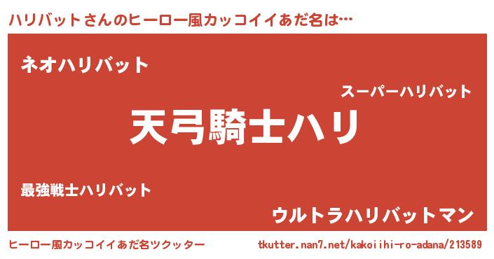 | 男性向けラノベタイトル風あだ名 | 『ハリバットの嫁は女の子じゃないと思った?』 |