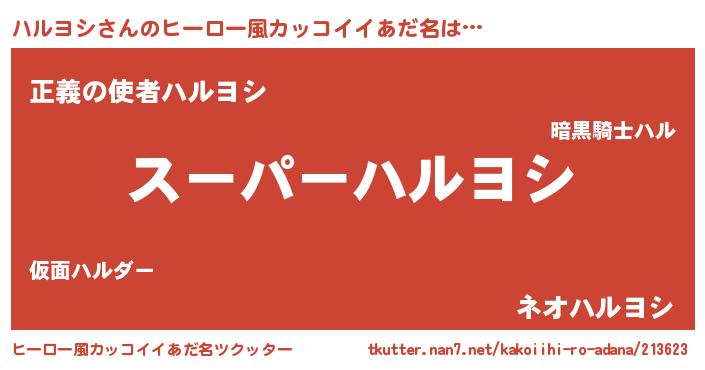 | 男性向けラノベタイトル風あだ名 | 『ハルヨシの憂鬱』『緋弾のハルヨシ』 |