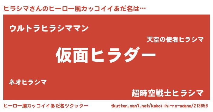 | 意味不明あだ名 | 『住所不定無職ヒラシマ(4歳)』 |