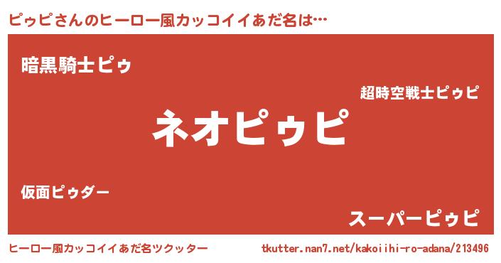 | 男性向けラノベタイトル風あだ名 | 『ピゥピスレイヤー』『ピゥピの憂鬱』 |