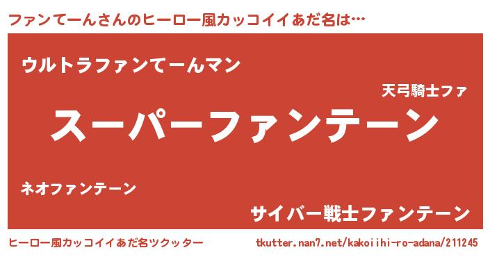 | 男性向けラノベタイトル風あだ名 | 『ファンてーんの憂鬱』 |