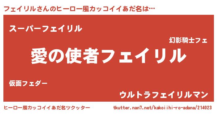 | 女子向けラノベタイトル風あだ名 | 『フェイリル恋絵巻』 |