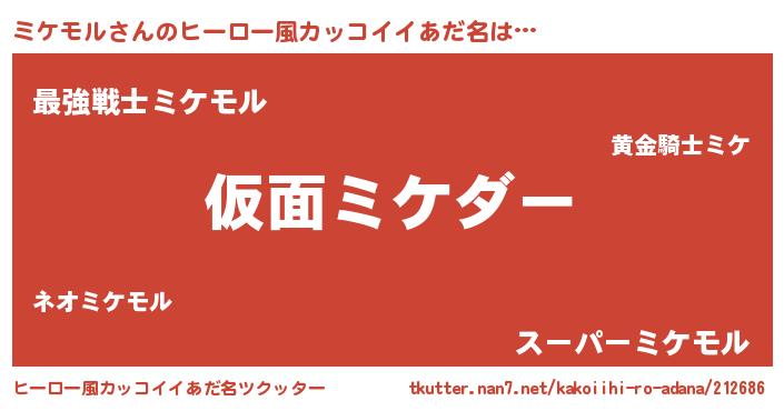 | 意味不明あだ名 | 『住所不定無職ミケモル(40歳)』 |