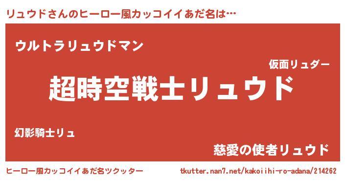 | 男性向けラノベタイトル風あだ名 | 『魔法科高校のリュウド』 |