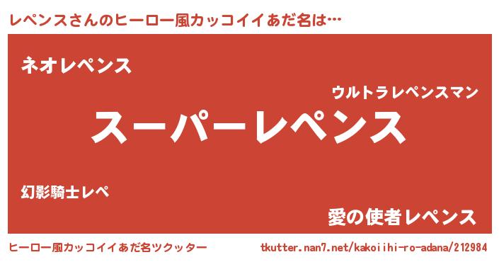 | 男性向けラノベタイトル風あだ名 | 『レペンススレイヤー』『レペンスの憂鬱』 |