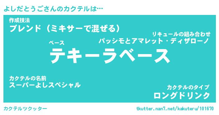 | ヒーロー風カッコイイあだ名 | 『スーパーヨシダトウゴ』『天弓騎士ヨシ』 |