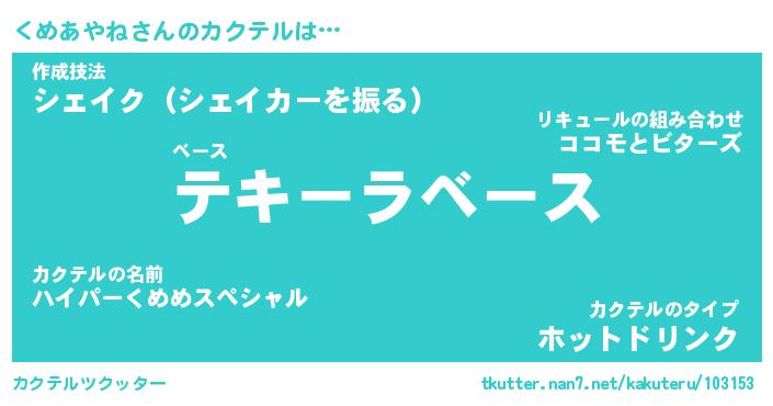 | ファンタジー風あだ名 | 『クメフェル』『エターナルクメアヤネー』 |