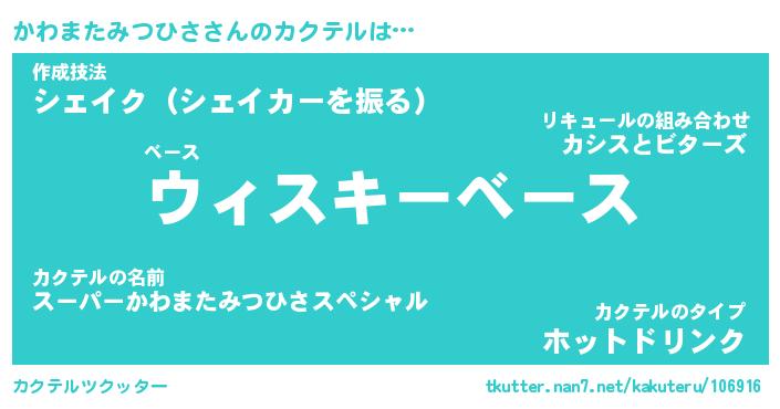 | 肩書あだ名 | 『かわまたみつひさ御曹司』 |
