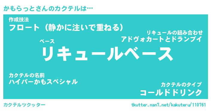 | 料理風あだ名 | 『節約★かもらっとと油揚げの玉子丼』 |