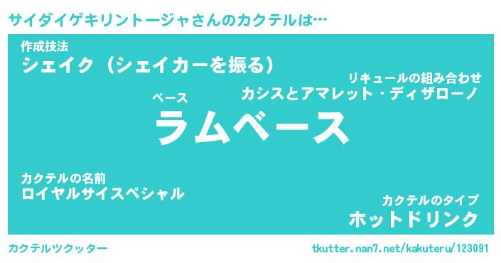 | ヒーロー風カッコイイあだ名 | 『スーパーサイダイゲキリントージャ』 |