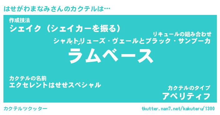 | 肩書あだ名 | 『はせがわまなみ御曹司』 |
