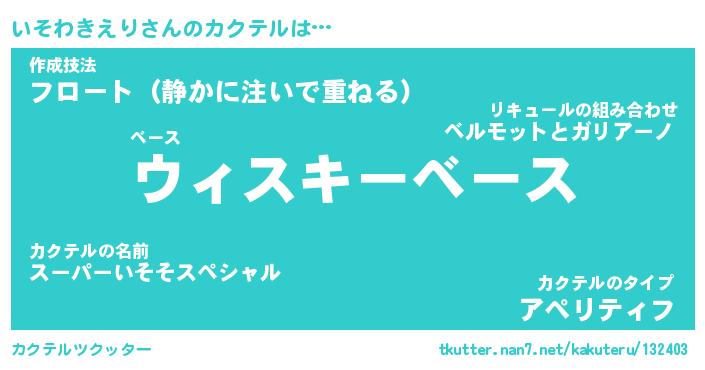 | ヒーロー風カッコイイあだ名 | 『スーパーイソワキエリ』『黄金騎士イソ』 |