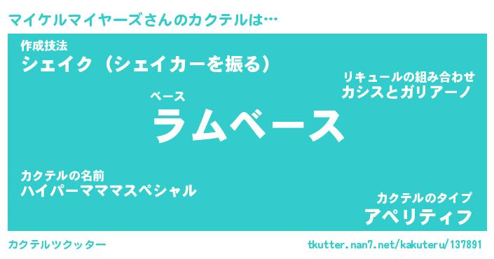 | 欧米人風あだ名 | 『マイケルマイケルマイヤーズ』 |