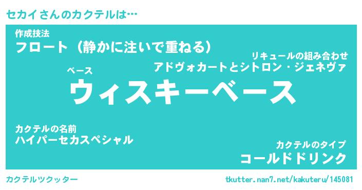 | ヒーロー風カッコイイあだ名 | 『スーパーセカイ』『ウルトラセカイマン』 |