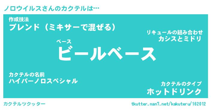 | 伝説のあだ名 | 『伝説のスナイパーノロウイルス』 |