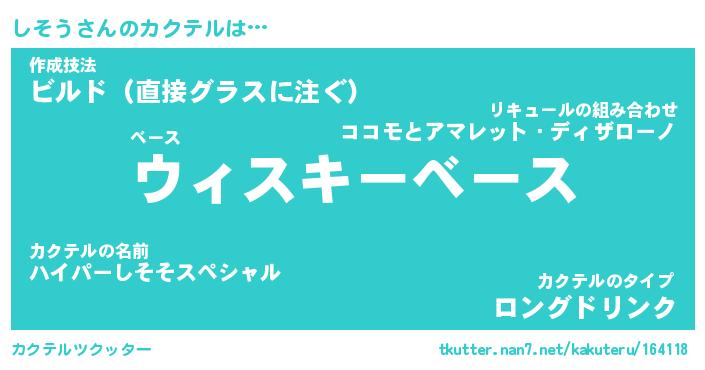 | ヒーロー風カッコイイあだ名 | 『スーパーシソウ』『ウルトラしそうマン』 |