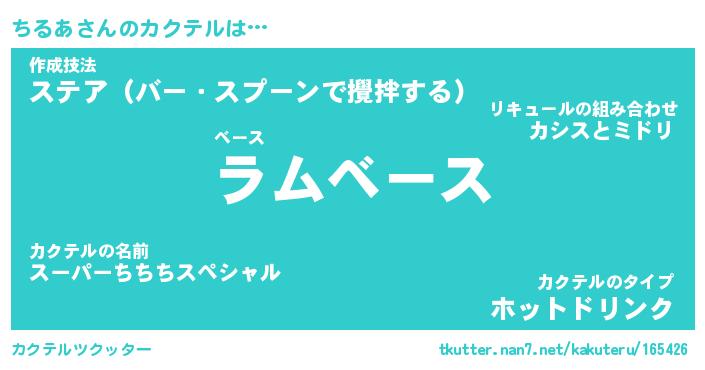 | ヒーロー風カッコイイあだ名 | 『スーパーチルア』『ウルトラちるあマン』 |