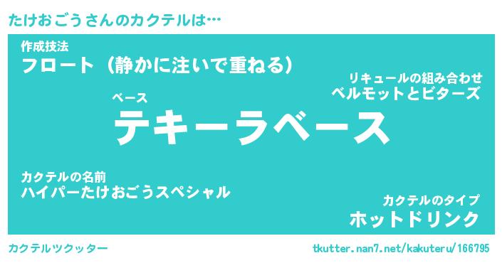 | ヒーロー風カッコイイあだ名 | 『スーパータケオゴウ』『炎刃騎士タケ』 |