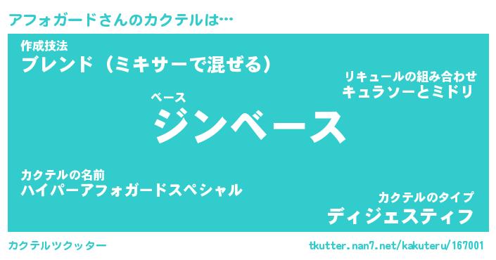 | ヒーロー風カッコイイあだ名 | 『スーパーアフォガード』『幻影騎士アフ』 |