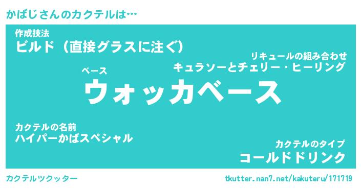 | ヒーロー風カッコイイあだ名 | 『スーパーカバジ』『ウルトラかばじマン』 |