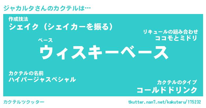 | ヒーロー風カッコイイあだ名 | 『スーパージャカルタ』『幻影騎士ジャ』 |