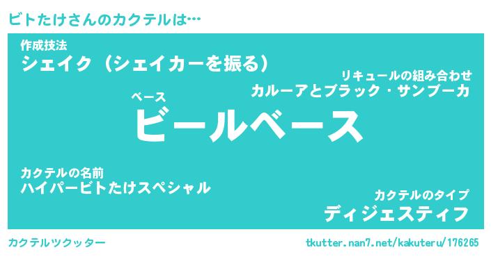 | ヒーロー風カッコイイあだ名 | 『スーパービトタケ』『幻影騎士ビト』 |