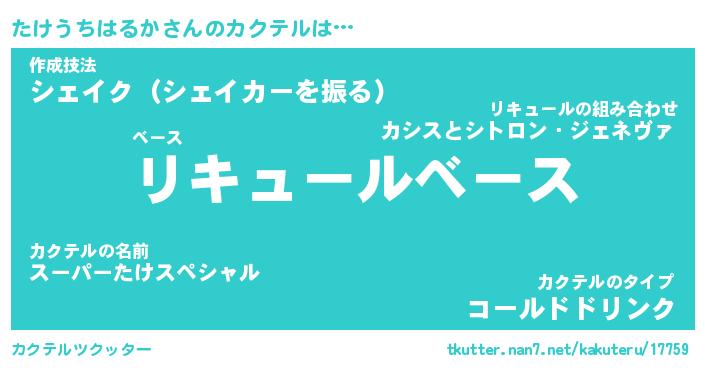 | ツイッター | たけうちはるかさんのツイッターID『masyumaro_star』 |