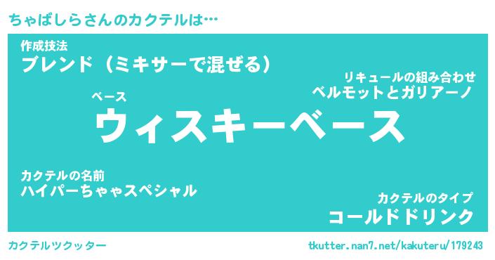 | ヒーロー風カッコイイあだ名 | 『スーパーチャバシラ』『魔戒騎士チャ』 |