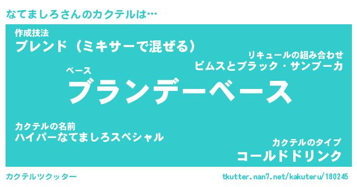 | ヒーロー風カッコイイあだ名 | 『スーパーナテマシロ』『魔戒騎士ナテ』 |