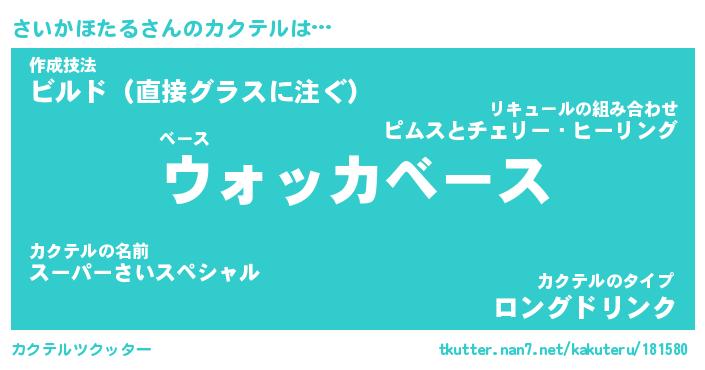 | ヒーロー風カッコイイあだ名 | 『スーパーサイカホタル』『天弓騎士サイ』 |