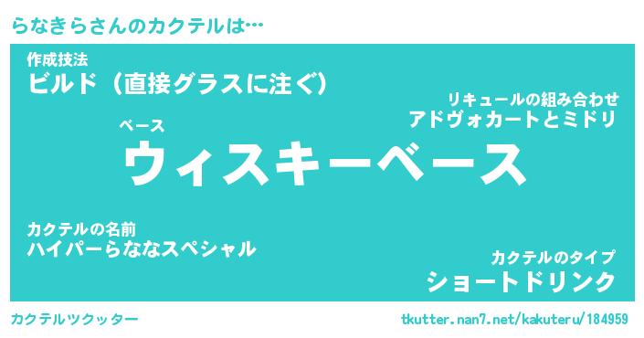 | 意味不明あだ名 | 『ペロリンらなきら』『永久保存らなきら』 |