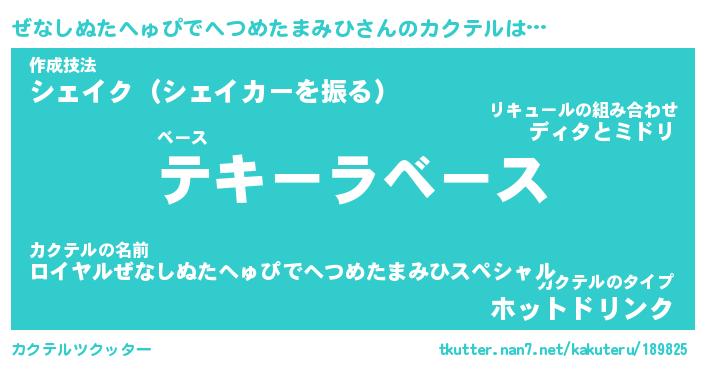 | 料理風あだ名 | 『ネギたっぷりぜなしぬたへゅぴでへつめたまみひの南蛮漬け』 |