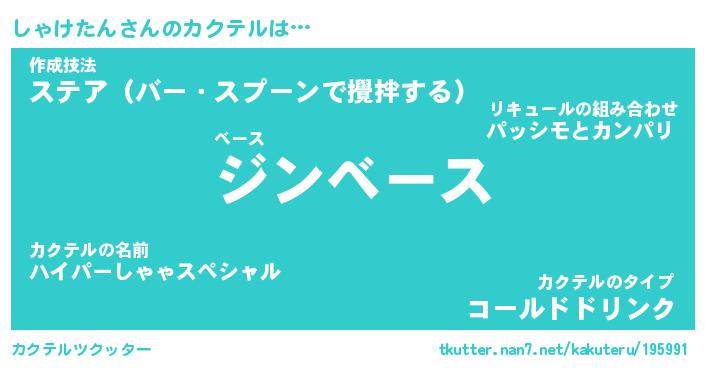 | ヒーロー風カッコイイあだ名 | 『スーパーシャケタン』『暗黒騎士シャ』 |