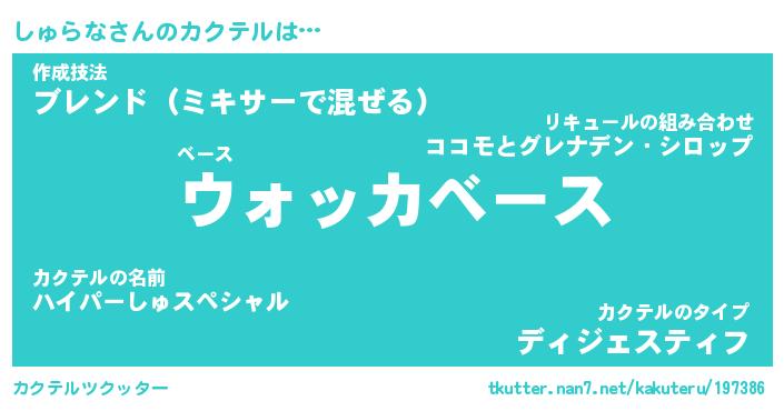 | ヒーロー風カッコイイあだ名 | 『スーパーシュラナ』『幻影騎士シュ』 |
