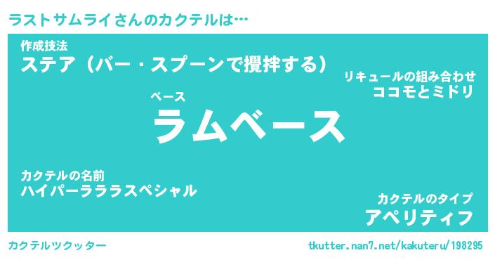 | 意味不明あだ名 | 『ペロリンラストサムライ』 |