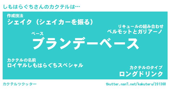 | 女子向けラノベタイトル風あだ名 | 『(仮)しもはらぐちのやんごとなき事情』 |