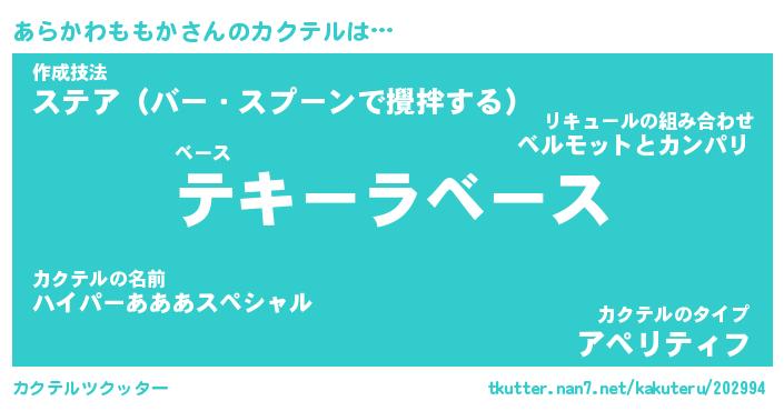 | ヒーロー風カッコイイあだ名 | 『スーパーアラカワモモカ』 |