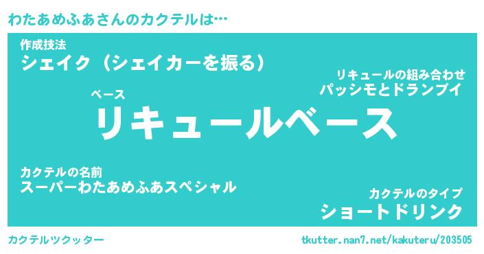 | 欧米人風あだ名 | 『マイケルわたあめふあ』 |