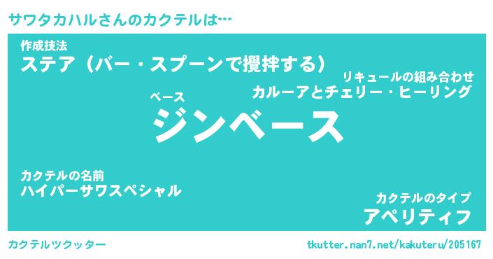 | ヒーロー風カッコイイあだ名 | 『スーパーサワタカハル』『暗黒騎士サワ』 |