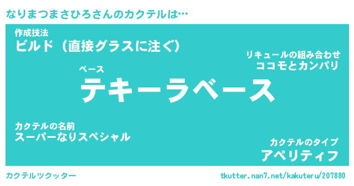 | ヒーロー風カッコイイあだ名 | 『スーパーナリマツマサヒロ』 |