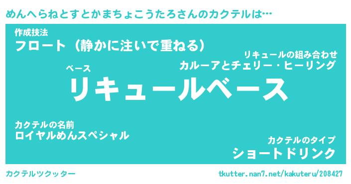 | 料理風あだ名 | 『節約★めんへらねとすとかまちょこうたろと油揚げの玉子丼』 |