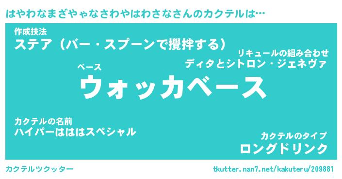 | 自動車の名前っぽいあだ名 | 『ハヤティマ』『ハクア』『ハント』 |