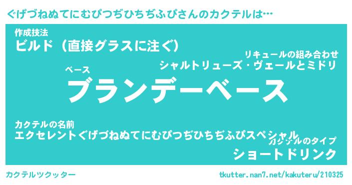 ぐげづねぬてにむぴつぢひちぢふぴさんのカクテルをツクッター!