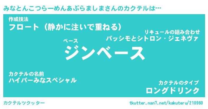| ヒーロー風カッコイイあだ名 | 『スーパーミナトンコツラーメンアブラマシマ』 |
