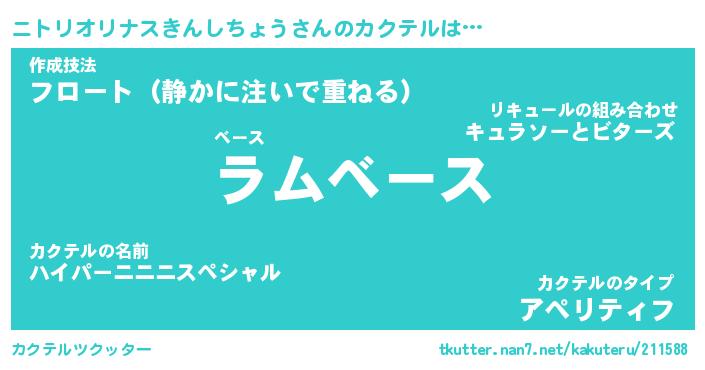 | 肩書あだ名 | 『ニトリオリナスきんしちょうCEO』 |