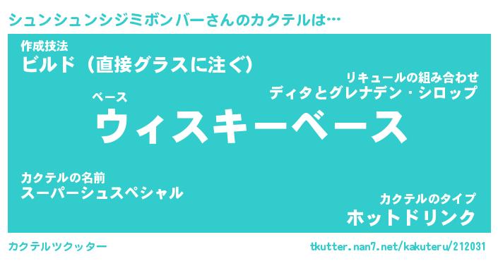 | ヒーロー風カッコイイあだ名 | 『スーパーシュンシュンシジミボンバー』 |