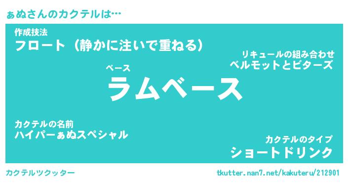 | ファンタジー風あだ名 | 『ァヌフェル』『エターナルァヌー』 |