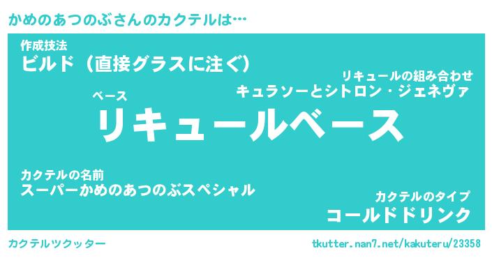 | ヒーロー風カッコイイあだ名 | 『スーパーカメノアツノブ』 |